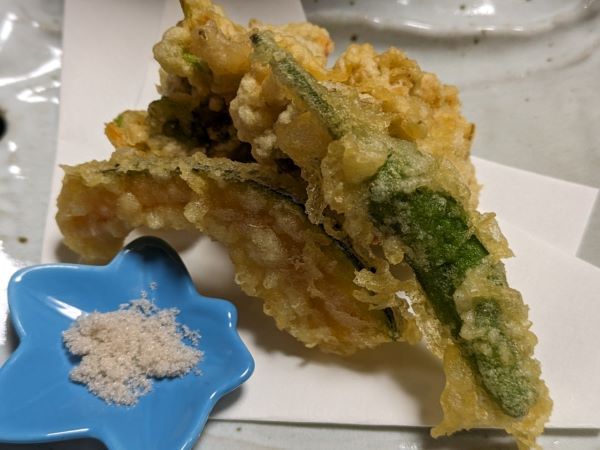 サクサクの天ぷらの盛り合わせの中でも、桜エビとセリのかき揚げは、季節を感じる春の訪れが待ち遠しくなるお味でした。