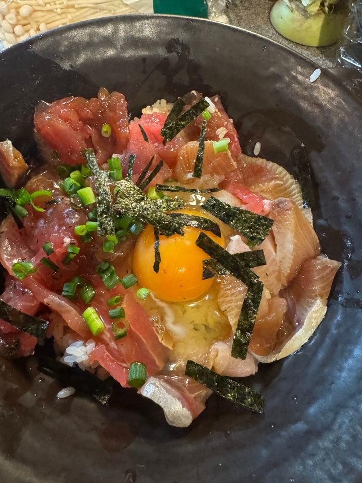 マジでごめんなさい。ブリしゃぶ作ると同時に漬けていました。刺身の保存は厳しくても、漬ければなんとかなります。今回はマグロも漬けていましたので二色漬け丼、卵をのせて。子どもたちもバクバク食べていました。