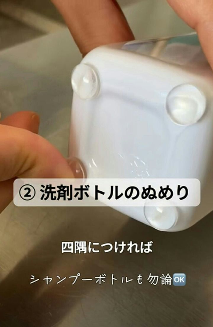こうすることで、ボトルを直接置いても、ほどよく隙間が空くので、水がたまってしまうことも無く、ぬめりを防ぐことができます。