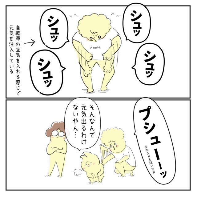 と自転車の空気を入れる感じで私に元気を注入してくれた兄。