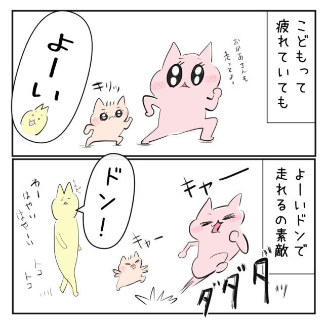 子どもって疲れていてもよーいドンで走れるの素敵。