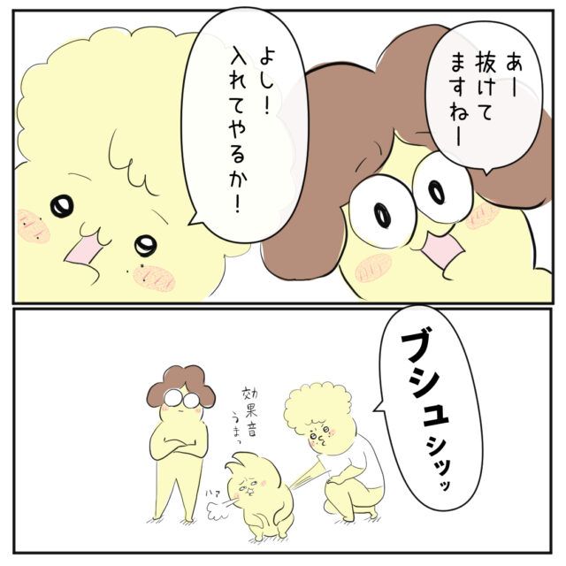 「プシューーッ(空気入れを抜いた音)」