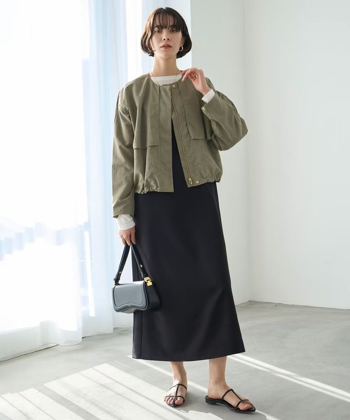 カーキは、ロング丈よりも短め丈のアウターで取り入れると、大人カジュアルな着こなしが楽しめますよ。色味は濃い暗めカーキより、薄いカーキの方が柔らかい印象になります。