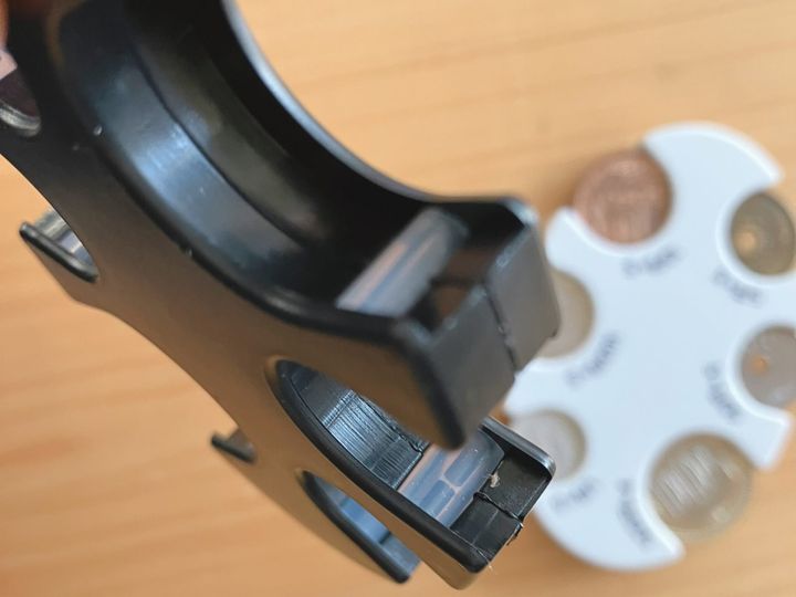 硬貨を収納する両側にゴム製のストッパーが付いているので、硬貨が落ちることがないようにしっかり固定されます。