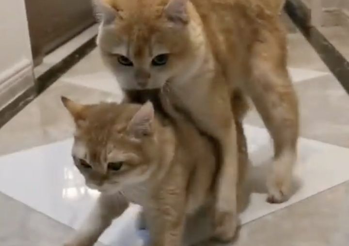 「もう赤ちゃんじゃないのに〜」大きな子猫を運ぶ母猫。