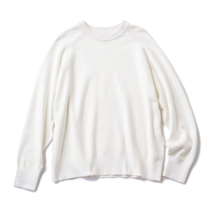 顔映りもいい爽やかなホワイトニット。今買って初夏まで着られるさらりとしたコットン素材で選んで。一枚ではもちろん重ね着でも活躍。¥28,600(ロンハーマン)