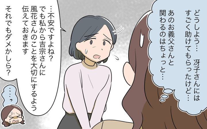 冴子の説得によって義父も納得したようで、風花は冴子に感謝の気持ちでいっぱいでした。その話を聞いた太一は驚きつつもホッとしていました。これで一件落着かと思っていた頃…