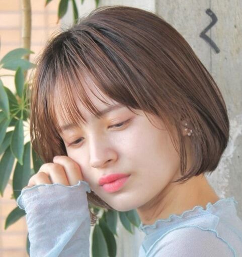 毛先をゆるく内巻きにカールさせつつエアリーに仕上げれば、ふわっと軽さが加わると同時にあご周りに向かってシュッと細い印象に。また、肌の色がキレイに見えるように透明感のある髪色を合わせると、よりおしゃれ感を底上げできます。