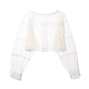 簡単にレイヤードが楽しめる、やわらかなチュールトップス。余裕のあるサイズ感で、カットソーも中にレイヤードできる。ところどころの切り替えもポイント。
