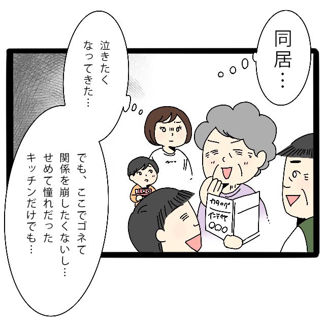 (同居・・なんか泣きたくなってきた・・。でも、ここでゴネて関係を崩したくないし・・せめて憧れだったキッチンだけでも・・)