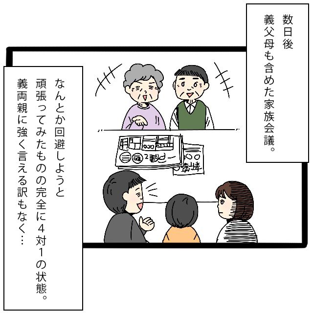 なんとか回避しようとがんばったユイさんですが、完全に4対1の状態で、義両親に強く言える訳もなく・・