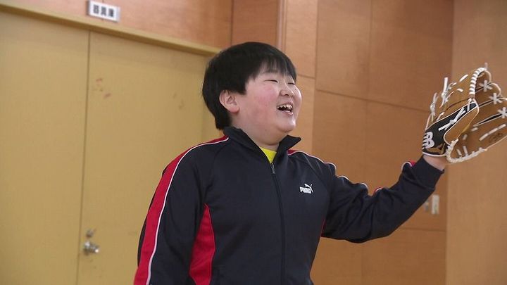 大谷選手から贈られたグローブを手にしたのは、たった一人の児童、6年生の古屋智貴くんです。