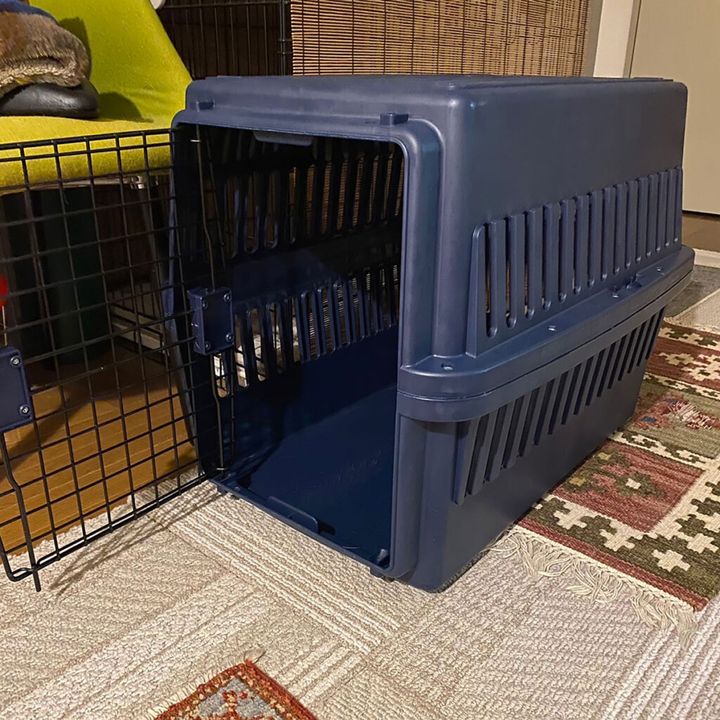 こんにちは、ハルくんです。週末に海のほうのおうちまでドライブするときは、後ろの座席のハーネス付きクッションがぼくの定位置でした……先週までは。だいぶ成長してやんちゃ度が増してきた昨今、かーちゃんたちがいる前の座席に行こうとしたり、逆にラゲッジに移動しようと試みたり、危険極まりないと判断されてしまいました。今週からぼくの移動定位置は、ラゲッジに置かれるこのクレートです。まだまだぜんぜん慣れません。孤独〜って感じで、めちゃくちゃ凹んでいるぼくなのでした。