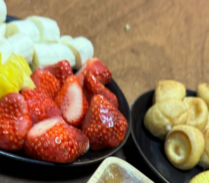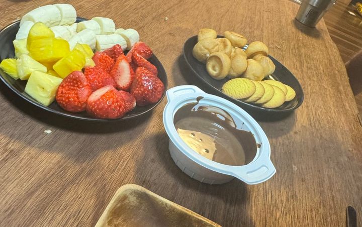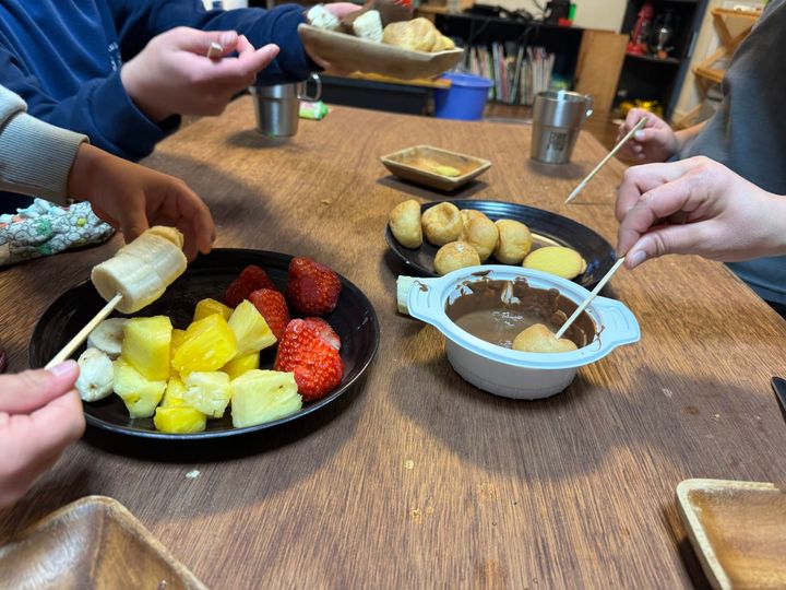 ほー。チョコレートフォンデュですか!息子たちは大喜び。まぁ1名、次男はチョコを食べないのであまり喜んでいませんでしたが…。