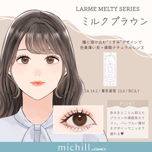 赤みをとことん抑えたブラウンの裸眼系カラコン。バレづらい薄付きデザインでこっそり盛れる♡