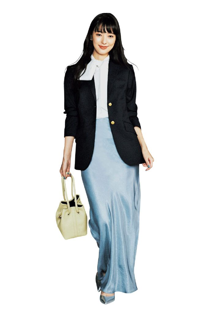 ジャケットの日こそボウタイブラウスで上半身に華やぎを