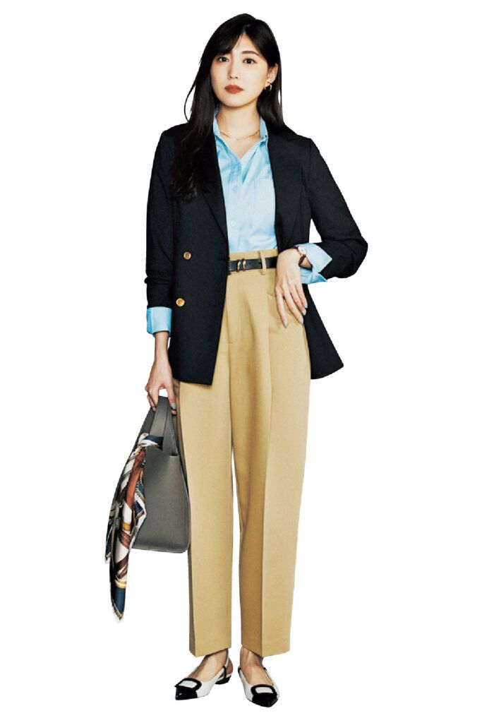 ジャケット¥24,200(オリヒカ/オリヒカ池袋東口店)シャツ¥16,500(アルページュストーリー/アルページュストーリー プレスルーム)パンツ¥17,930(アンクレイヴ スタンダード/アンクレイヴ)バッグ¥41,800(FEEL AND TASTE/ショールーム セッション)パンプス〈2月中旬展開〉¥51,700(プリティ・バレリーナ/F.E.N.)ベ ルト¥16,500(バナナ・リパブリック)スカーフ¥15,400(マニプリ)イヤリング¥7,700(アビステ)ネックレス¥13,200(マリハ)時計¥14,850(クルース/ HIROB ルミネ新宿店)