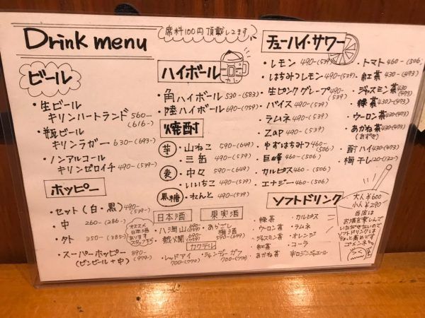 店内では、刺し・揚げ物・〆のご飯・1品料理等をいただくことができます。お酒の種類も豊富でした。