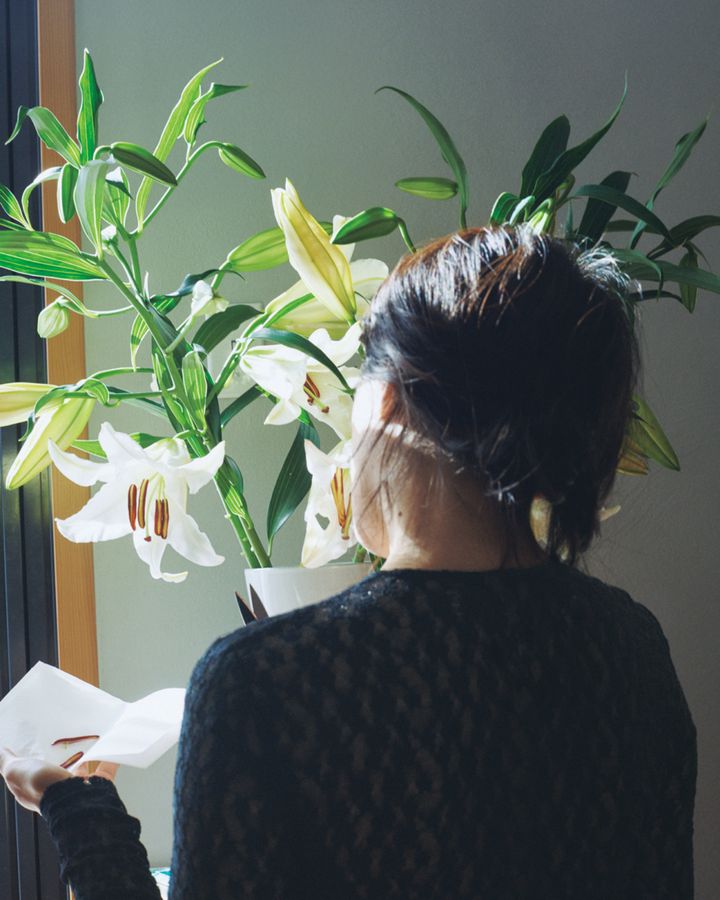 「花の手入れ……、ん? 美容? と思われますよね。毎朝水切りしたりしながら、綺麗に咲かせて、花の波動を受けていると気分がいいのです。そして花弁を落とし色褪せても美しい姿を見ていると、花のように在りたいと。みんなが誰かになりたいと憧れるように、私の場合、そういつも願っているのです」(風間さん・以下同)