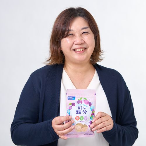 1997年入社。「健康食品」の研究開発を経て「親子deシリーズ」をはじめ「Mama Lula 葉酸&鉄プラス」「カロリミットシリーズ」などの商品企画を担当。プライベートでは2人の男の子のママ。