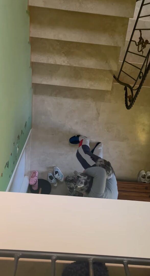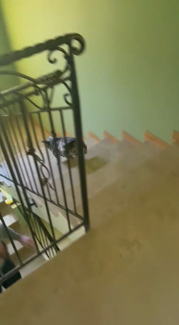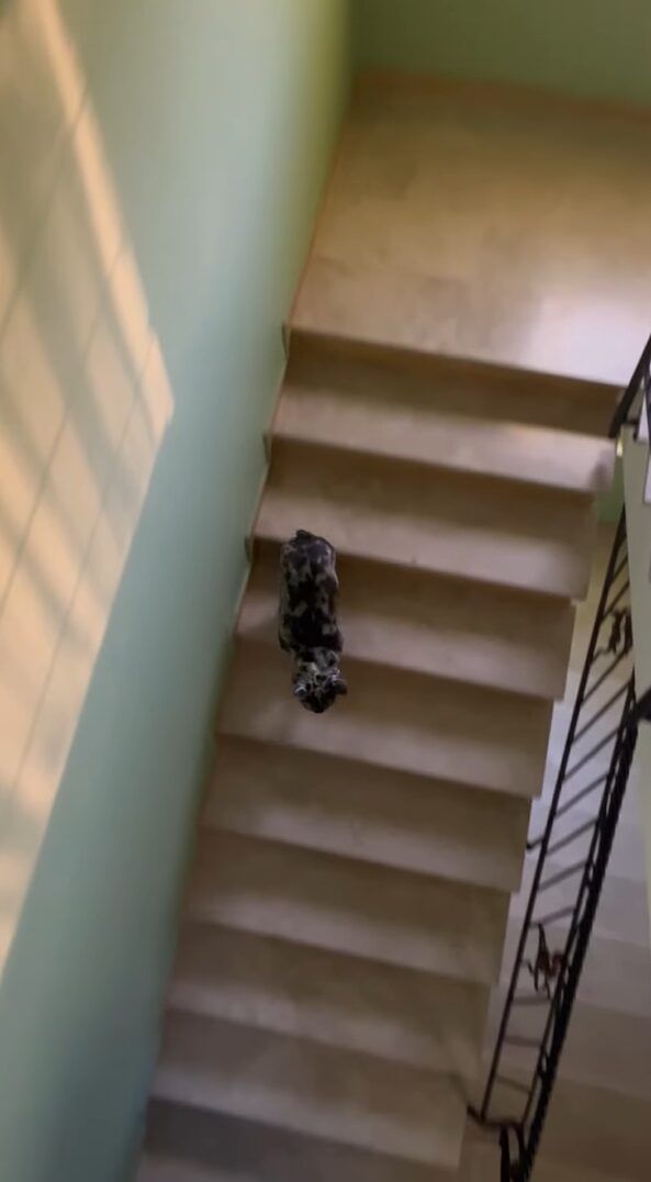 なんとか部屋を飛び出すと、その勢いのまま元気よく階段を駆け降りて飼い主さんを追いかけていきます。