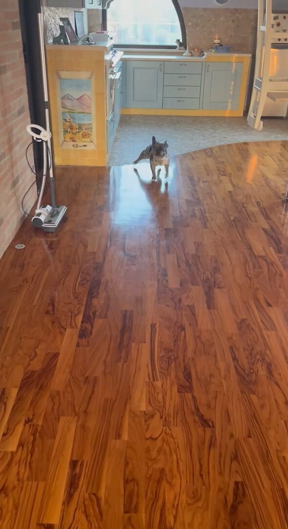 3. ツルツル滑るフローリングの床もなんのその!ブルドッグが飼い主さんと全力でおいかけっこ中!!【海外・動画】