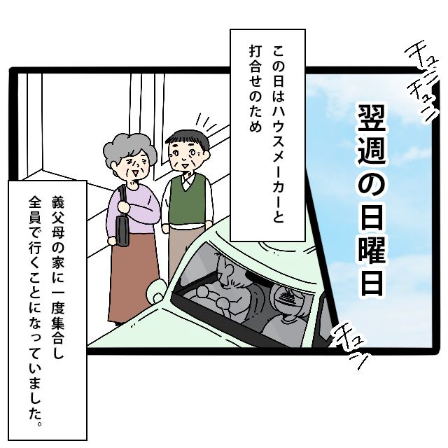 この日はハウスメーカーさんとの打ち合わせがあり、義父母の家に集合してから全員で行くことにしていたのですが、