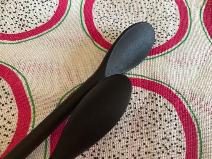 シリコンスプーンですくうと、粉が空気中に散りにくい気がする~