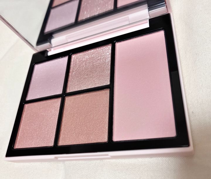 フェイススタイリストは広めの1区画と真四角の4区画の5色で構成されたパレット。広めの区画はチークにも使えるので旅行など荷物を減らしたい時にも便利♪
