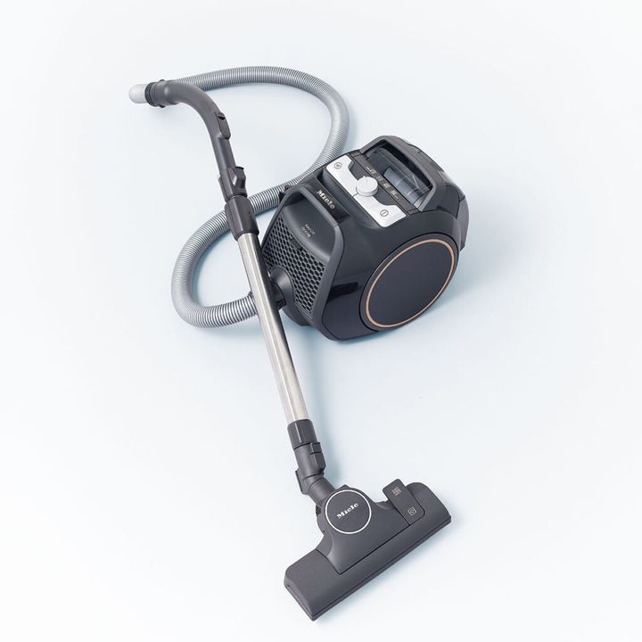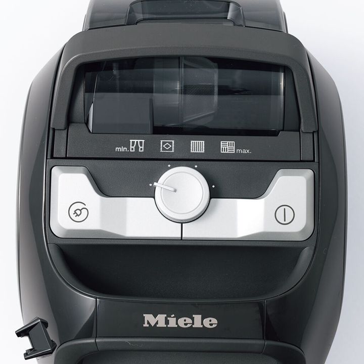 パワーは4段階。粗いゴミはダストコンテナ、細塵は集塵フィルターへ分別してくれる。「ワンタッチでダストコンテナの中身が捨てられるし、細かな埃が舞い上がったりしにくく、ゴミ捨てのストレスが少なめ。集塵フィルターはまるごと水洗い可能。がっつり掃除したいならこのパワーは魅力的なはず」。W28.2×L41.2×H28㎝ 7.8㎏ ¥70,400(ミーレ 0120−310−647)