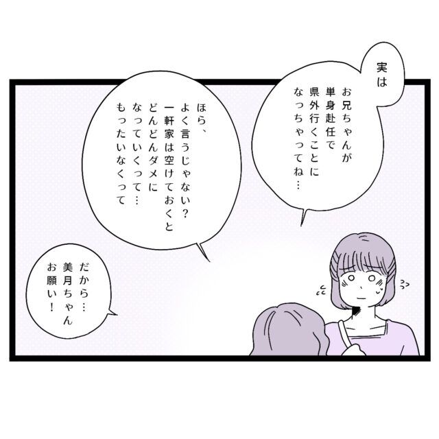 義兄カズヤさんの新居を内覧していた美月さんは、あまりにも唐突に「この家に住まない?」と言われて動揺が隠せません。