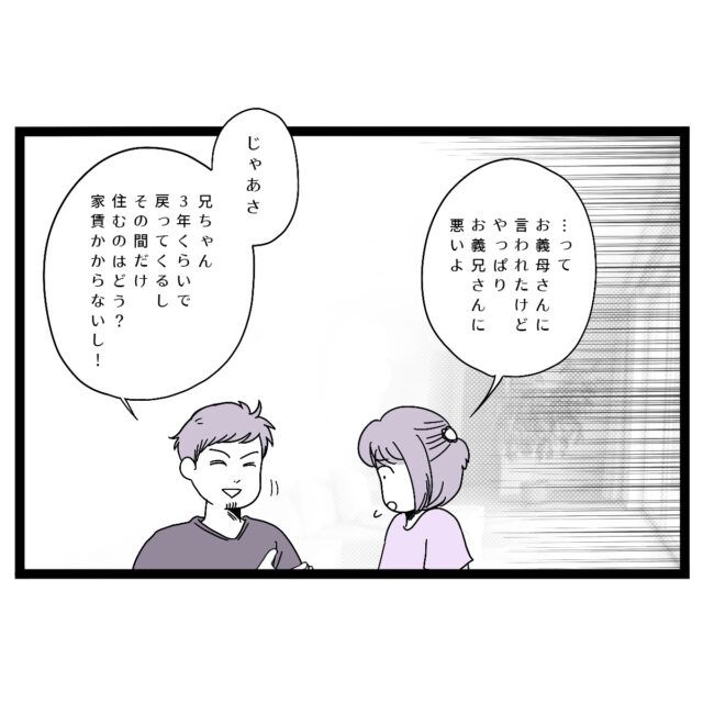 「兄ちゃん3年くらいで戻ってくるし、その間だけ済むのはどう?家賃かからないし!」