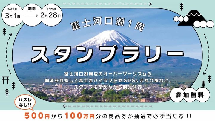 2024年3月1日(土)〜2025年2月28日(金)の期間、富士山のふもとにある山梨県富士河口湖町では、「富士河口湖1周スタンプラリー」を開催。