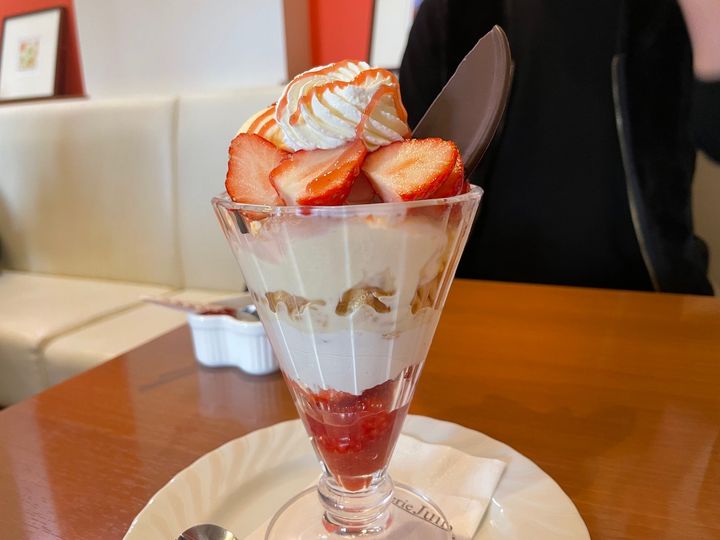 12〜5月限定の苺パフェファミレスなどでパフェをいただく度、「本当はパフェだけ食べたいのに、そういうお店ってあまりないよね」という話になるのですが、こちらがそのパフェだけ食べられるお店。 こんな近く(柏市内)にあったなんて!
