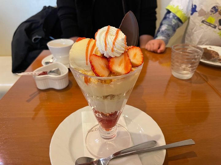 クリームは甘く、苺はいい意味でほどよい酸っぱさ。こんなに立派なパフェでも、あっという間に食べ切ってしまいました。苺やクリームなど、さすがケーキ屋さんの材料が使われているだけあって、ひとつひとつが上品な味わいでとても美味しかったです。