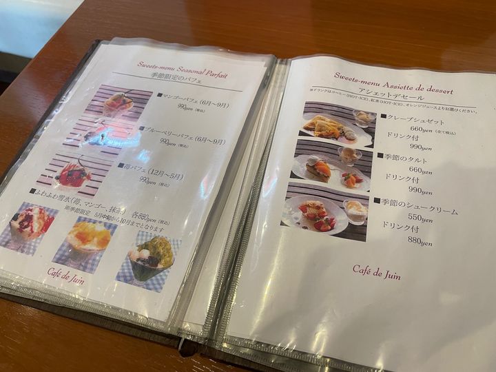 パフェとケーキの他にも、クレープなど軽めのデザートや、ランチ時間帯にはパスタやサンドイッチなどのランチメニューもありました。テラス席もあり、春先からは特に気持ちのいい過ごし方ができると思います。