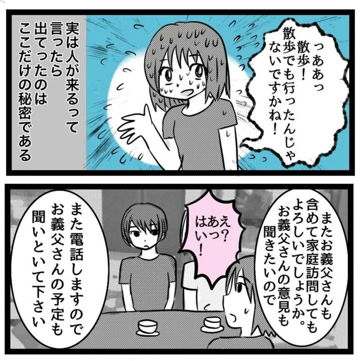 ゆーとぴあさんの発言で、職員の方は義父と次男の関係に疑問を持ち始めます。ゆーとぴあさんは冷や汗が止まらない状況でした。