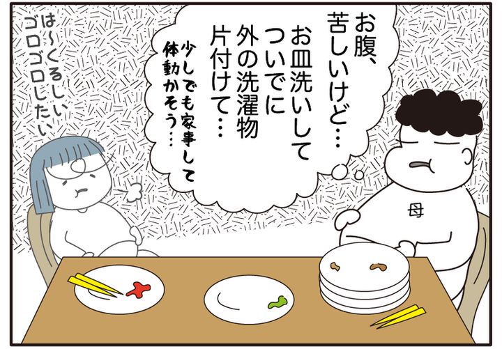 2. 「お腹、苦しいけど…」渋々家事をはじめた母に言った、娘の“悪魔的な誘惑”に「太らなくていいなぁ」