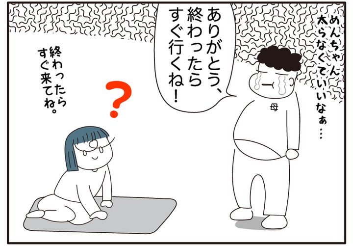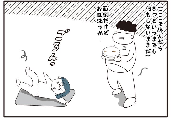 お腹いっぱいご飯を食べ、面倒と思いつつも、皿洗いや洗濯物の取り込みをしていたイズミさん。そんなイズミさんを見ためんちゃんが、「いいんだよ!ゴロゴロして!スマホいじってもいいんだよ!」と声をかけるのでした。
