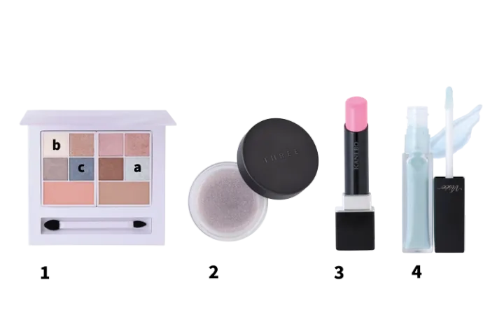 陰影やカラーで盛るのではなく、ツヤツヤ・キラキラ・テリッとしたいろんな質感で彩ったカラーレスメイク。匂わせるように忍ばせたニュアンスの青みも透明感を爆上げさせるヒミツのテク♡ めくるめくピュアな光の応戦で、カレもきっとイチコロ!
