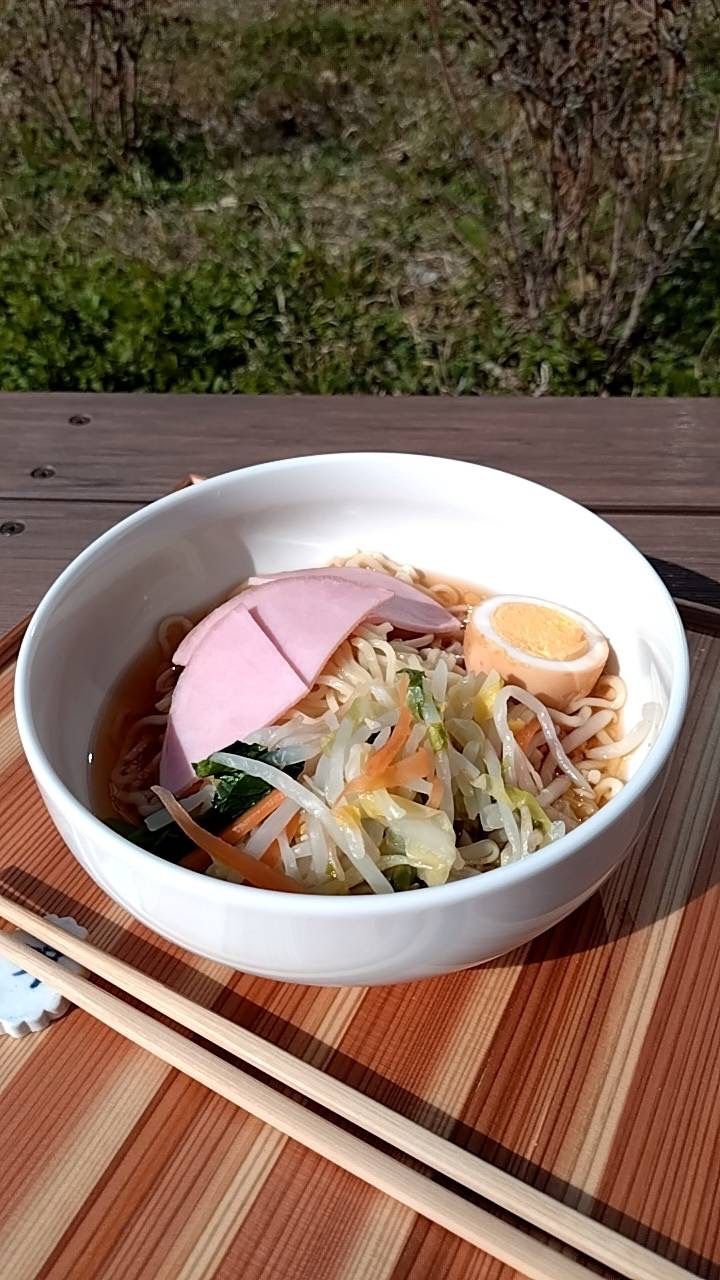 サッとゆでた野菜と、煮卵、ハム入りの特製醤油ラーメン! これが飛ぶように売れていきます。将来ラーメン屋さんやろうかな、なんて頭がよぎりました(笑)。