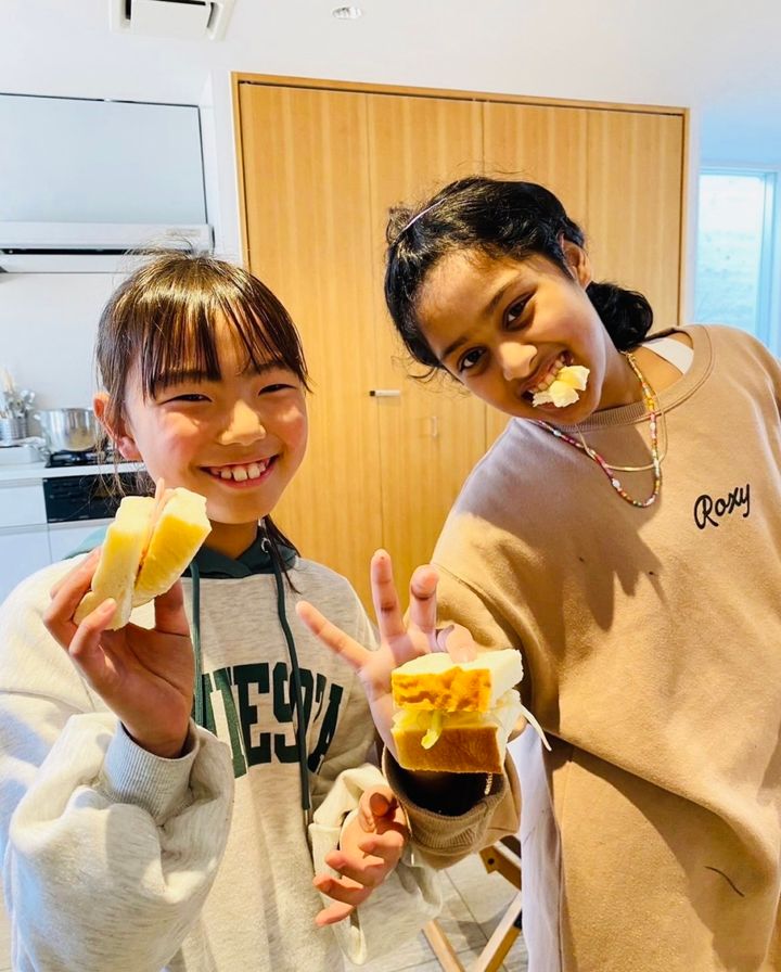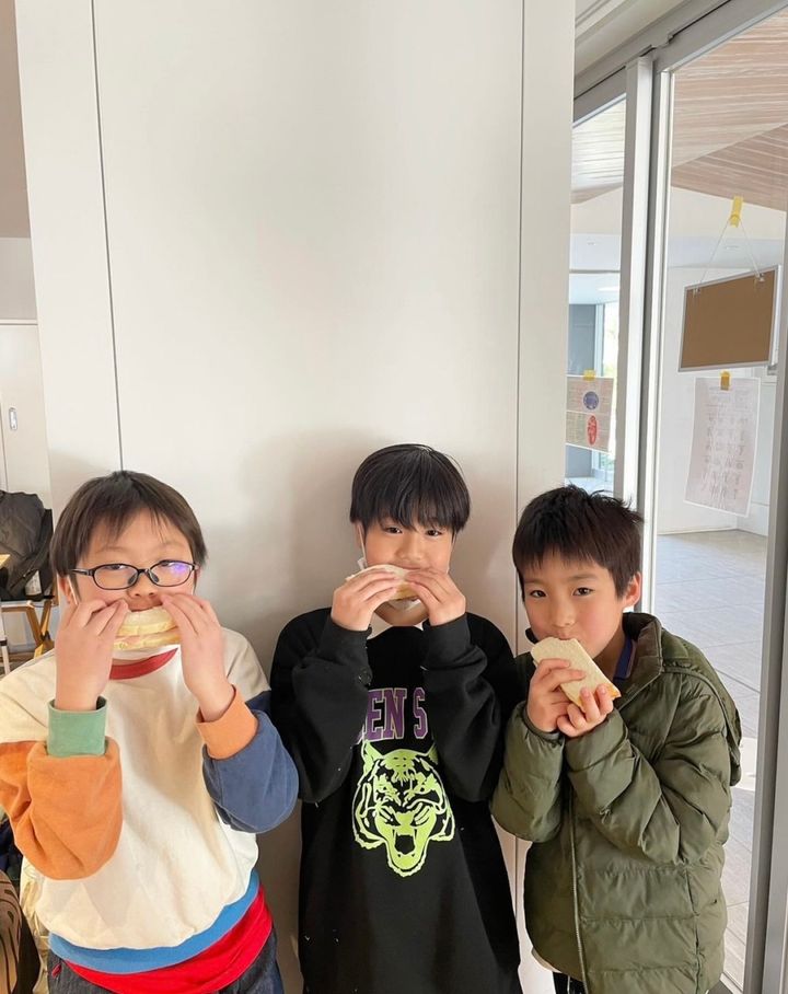 ラーメンを完食した後でも、パンをペロリ。子どもたちの食欲って、本当にすごい。たくさん食べて大きくなってね。