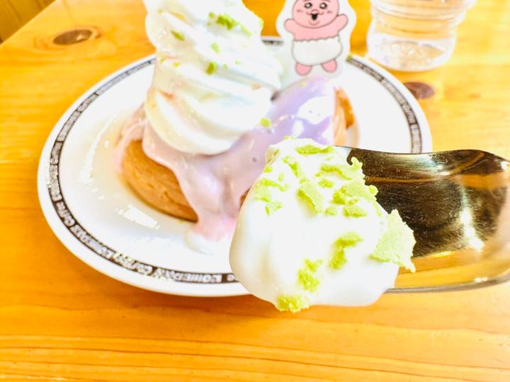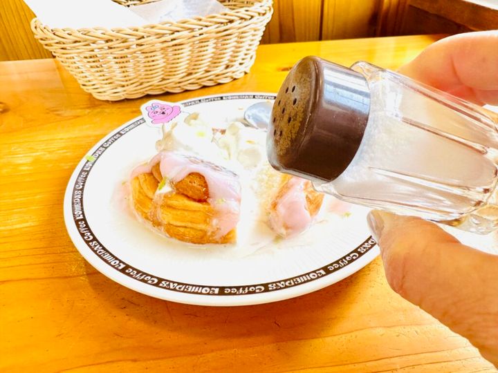 定番の「シロノワール」ではソフトクリームをホイップクリームに変えてカスタマイズできますが、今回の限定コラボメニューでは変更ができませんでした。そこで、今回の桜フレーバーにぴったりな限定シロノワールのちょいアレンジを考えてみました。