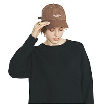 茶キャップ 2,970円/coen 肌なじみのいいモカカラー。細字の白ロゴが柔和な色みをもたつかせない抜けとして作用。
