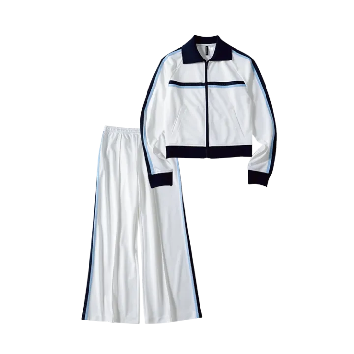 ライン入り白ジャージトップス、同素材パンツ