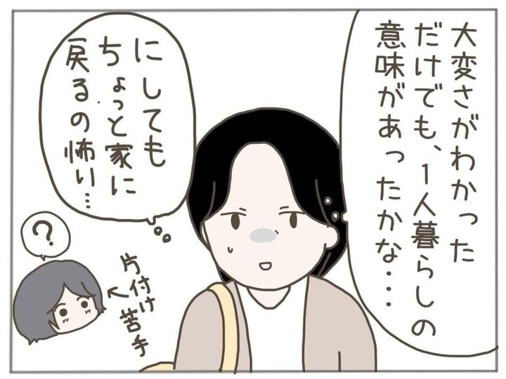 料理・洗濯・片付けと一人暮らしの大変さを身をもって実感した様子の姪。えっちゃんもそんな姪の姿に成長を感じました。その後、姪は無事に高校を卒業。社員寮がある会社へ就職することができました。