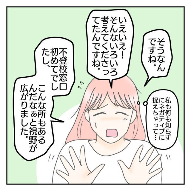 学校の外部を紹介されるということはそんなに手に負えない事態なのだろうかとマイナスに捉えてしまっていたので、このように話してもらえて良かったです。