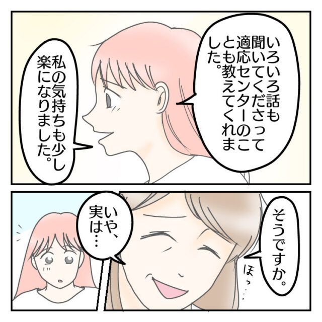 スクールカウンセラーの紹介で市の不登校専門窓口に相談に行ったねこじまいもみさん。相談員さんはまっちくんの学校でのつらさや頑張りを理解してくれ、学校以外にも適応指導センターという場所があり学校へ行けない子と親のケアや相談ができることなどを説明してくれ、学校以外にも色々な場所があることを知ったねこじまいもみさんは少し気持ちが楽になりました。そして後日、スクールカウンセラーの先生との面談で不登校専門窓口のことを聞かれ・・・。
