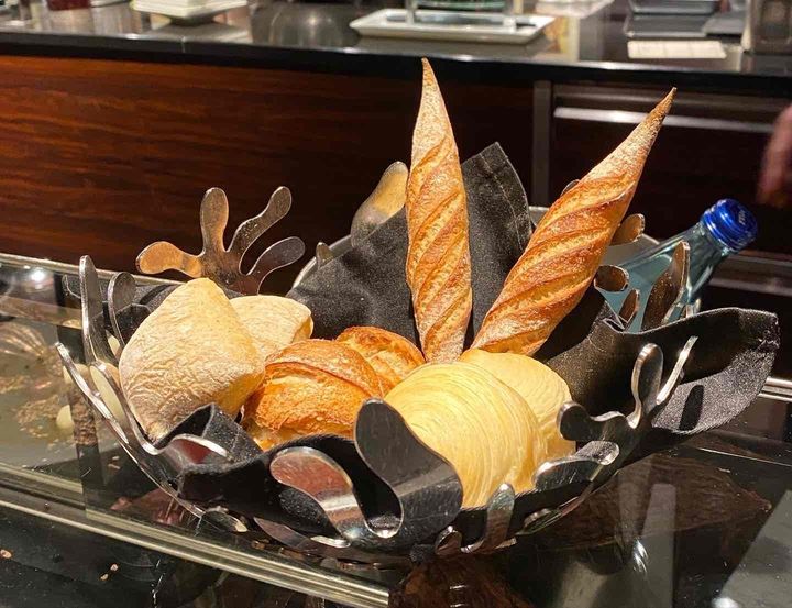 ロブションの自家製パンは、4種類もいただけるのが嬉しい♡デニッシュ生地やライ麦が入った生地など、ミニサイズながら本格的なパンとともにいただく食事は格別です。