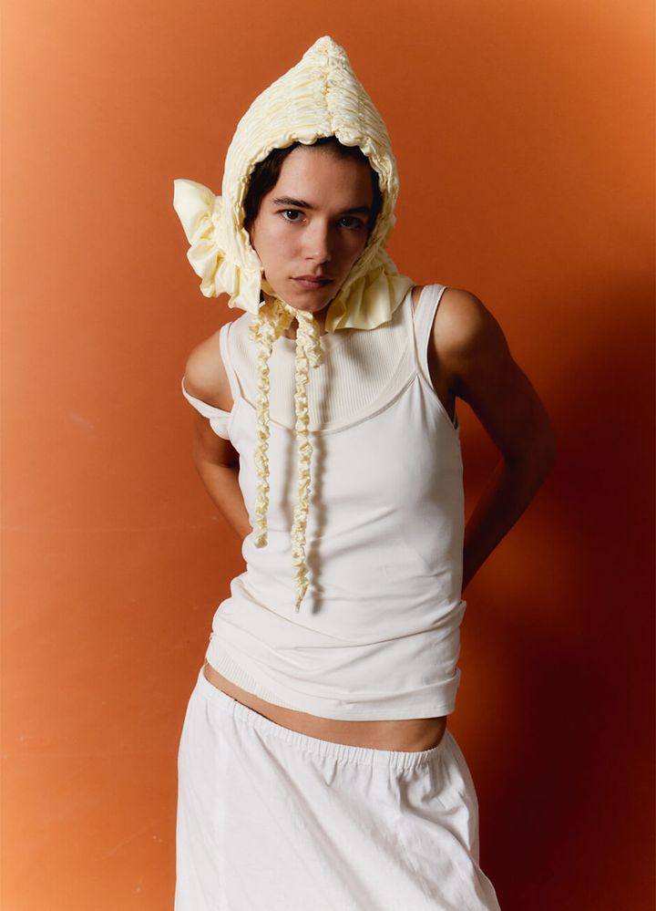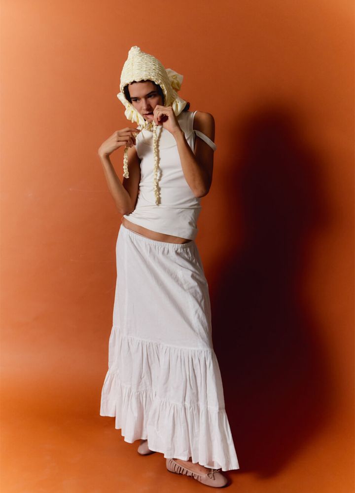 inner top by & OTHER STORIES, skirt by ANEMONE, hat by ZOE OMS, tops and shoes stylist’s own